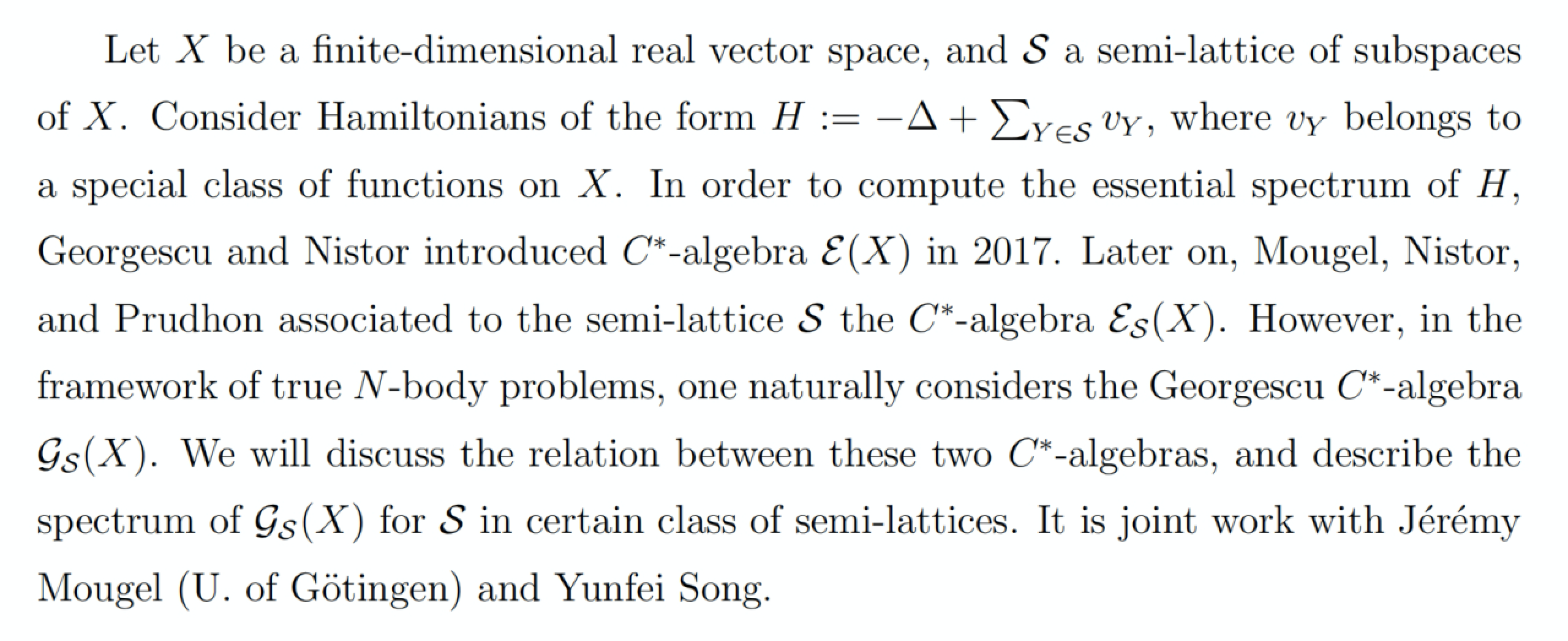 报告题目:Spectra of Georgescu C*-algebras associated to the N-Body Problems