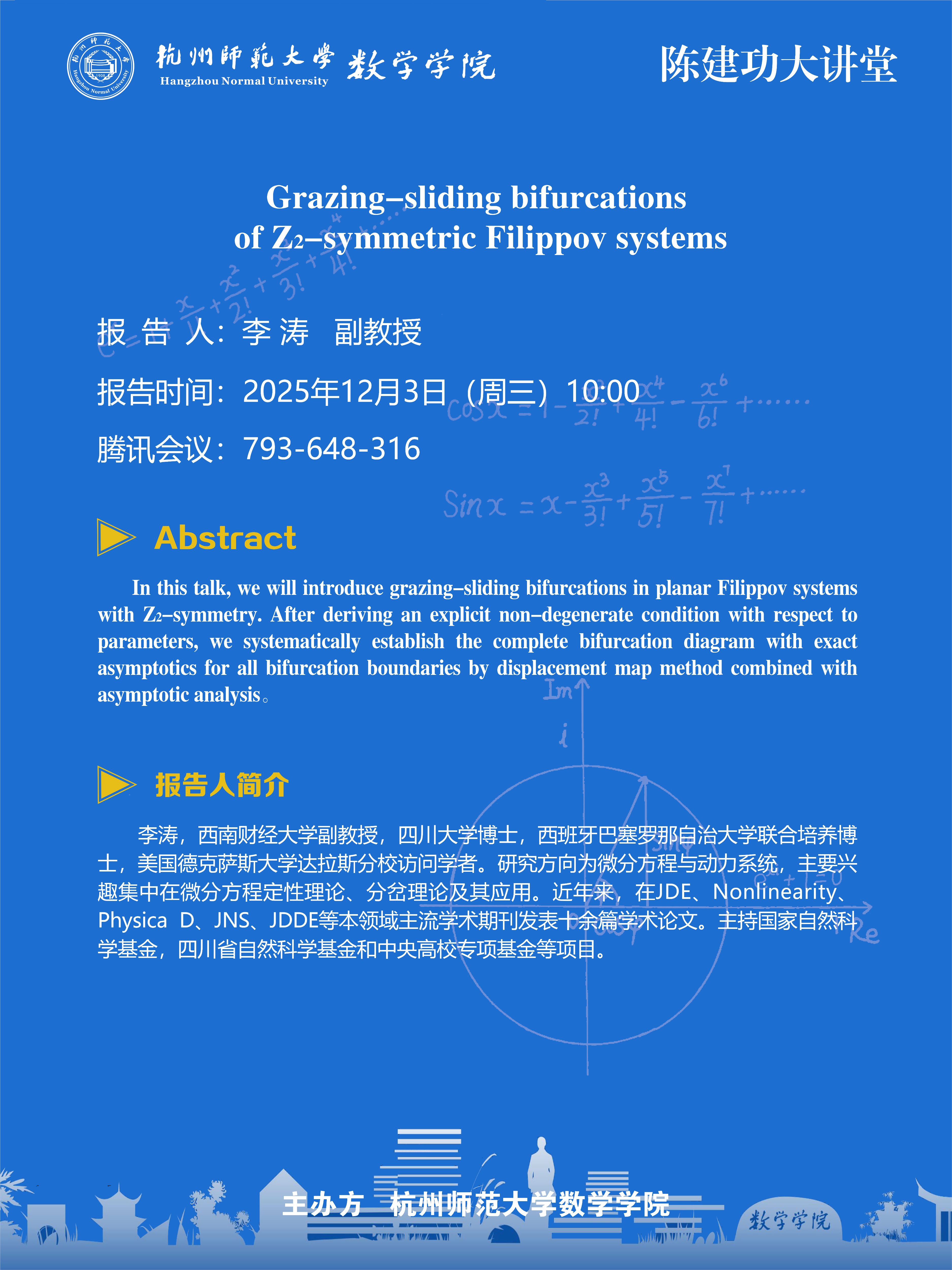 陈建功大讲堂(2025-147):Grazing-sliding bifurcations of Z2-symmetric Filippov systems