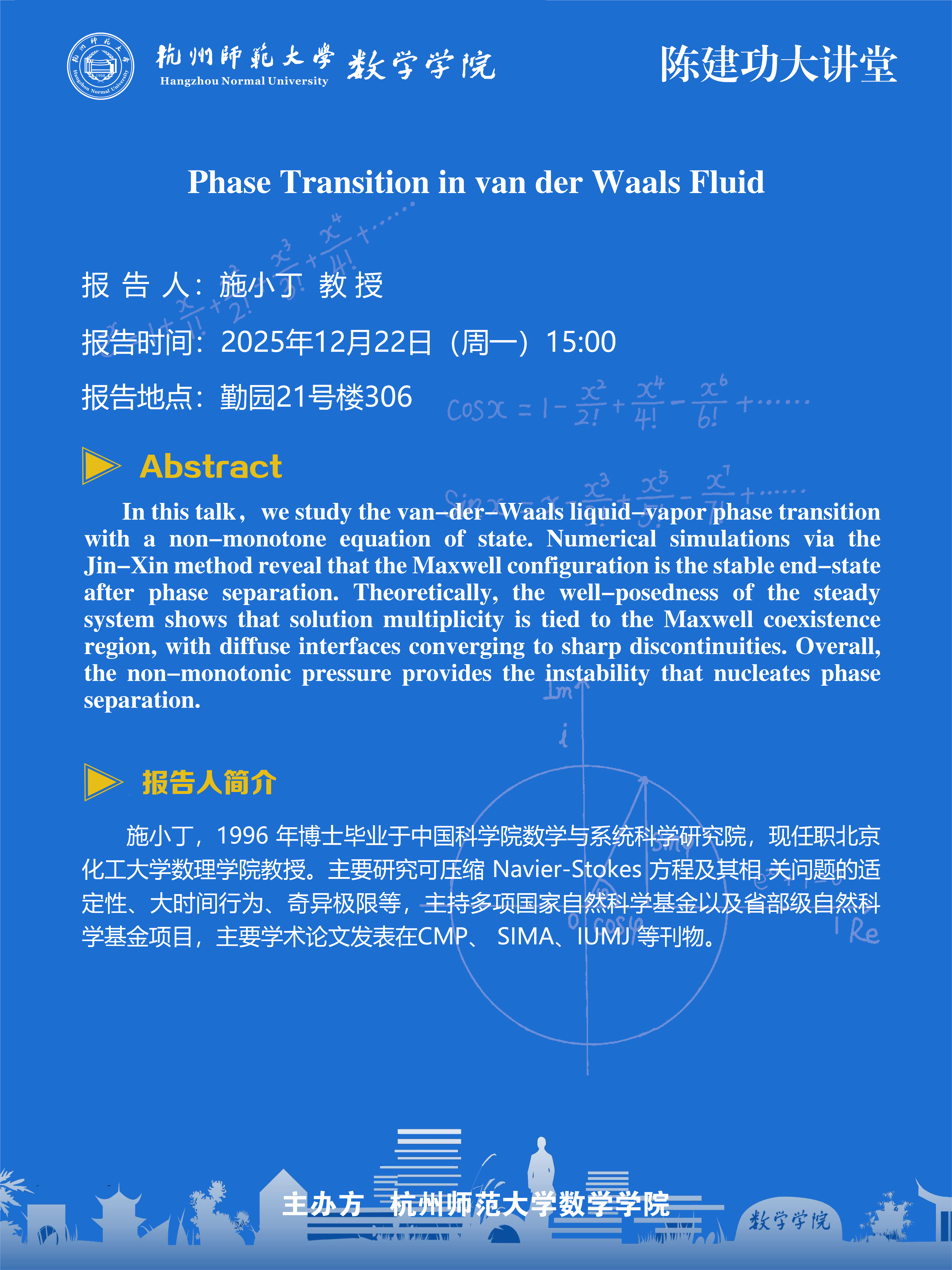 陈建功大讲堂(2025-158):Phase Transition in van der Waals Fluid