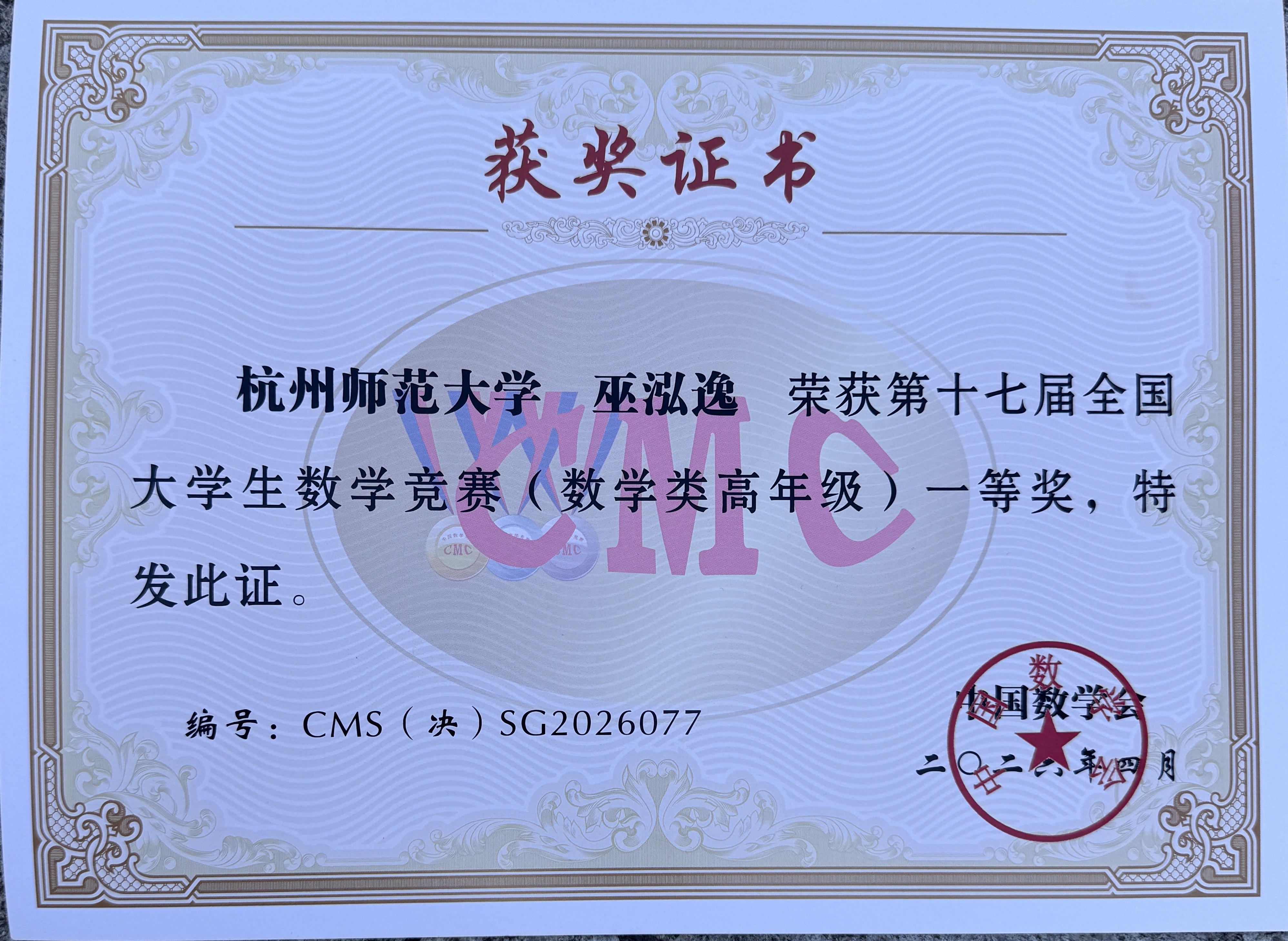 近日,第十七届全国大学生数学竞赛决赛在四川大学、成都理工大学圆满落幕。巴黎人 学子凭借扎实的专业功底与出色的临场发挥,在全国顶尖学子的角逐中脱颖而出,巴黎人 2022级巫泓逸同学摘得数学类(高年级)全国一等奖(全国仅84个名额),李福汉同学荣获数学类(高年级)全国二等奖,用优异成绩展现了杭师大学子的卓越风采。学生取得佳绩既是参赛学子勤学笃行、不懈拼搏的汗水结晶,更是巴黎人 实行“建功班”、推进拔尖创新人才培育的丰硕成果。